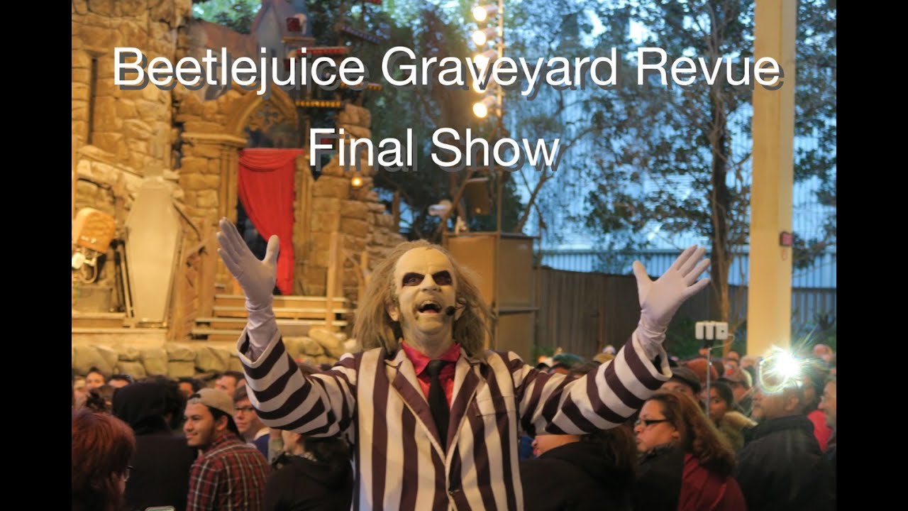 Beetlejuice's graveyard revue provides examples of: Where does it come from? Shows usually start each day. Played dracula in universal studios florida theme park's musical show, beetlejuice's rock 'n' roll graveyard revue. Beetlejuice's graveyard revue is the attraction from universal studios florida in orlando, florida.