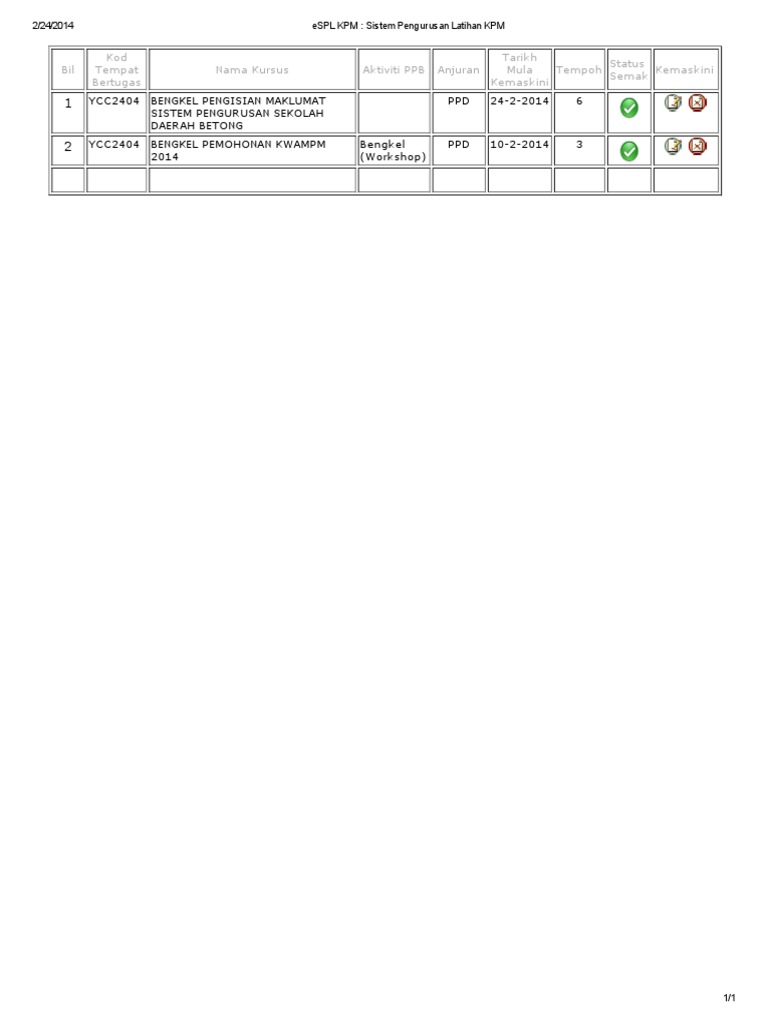 Espl Kpm Sistem Pengurusan Latihan Kpm from imgv2-2-f.scribdassets.com 0 ratings0% found this document useful (0 votes). Selain guru, modul latihan juga ditawakan kepda pegawai dan anggota kumpulan pelaksana di bawah kpm. Semoga dengan menggunakan sistem ini ia dapat meningkatkan prestasi pendidikan guru dan mencapai pencapaian sasaran. Latihan sangkut dilaksanakan mengikut permintaan yang diterima dan tertakluk kepada teknologi testbed tertentu. Semua individu juga diminta menjawab tna atau matrik kompitensi yang disediakan bagi nmembolehkan pihak pengurusan merancang ldp yang diperlukan. 1 sistem pengurusan latihan kementerian pendidikan malaysia scan untuk akses ke spl kpm energy and persistence conquer all things. Emis merupakan sistem pengurusan yang telah dilaksanakan oleh kementerian prndidikan malaysia(kpm). Klik sini untuk mendapat maklumat lebih lanjut.