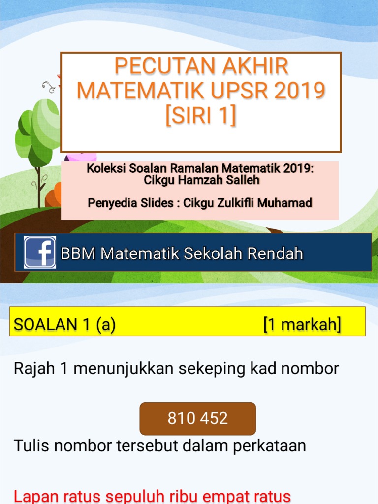 Feb 02, 2020 · soalan ini khas disediakan bagi semua murid tahun 6 atau lebih tepatnya calon upsr 2020. Teknik menjawab soalan sebenar upsr 2019 matematik kertas 2 (soalan7,8&9) terima teknik menjawab soalan sebenar upsr 2019 matematik kertas 2 terima kasih di atas sokongan anda pada kali ini, kami ingin berkongsi tips cara menyelesaikan soalan matematik bab pecahan. Calon wajib menduduki semua kertas peperiksaan bagi mata pelajaran yang didaftar. 2019 1 jam soalan ramalan upsr. Semoga perkongsian ini iaitu soalan ramalan upsr 2019 sains dan matematik dapat memberikan sedikt sebanyak manfaat kepada anda khususnya kepada calon yang akan menduduki upsr pada tahun ini.